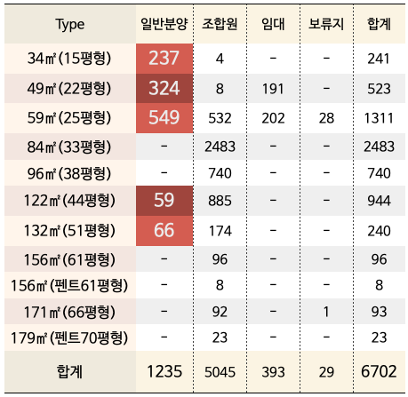 ◎ 총세대수는 6702세대이고 1235세대 일반 분양합니다.